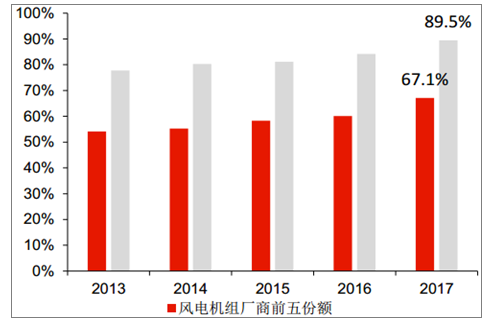 2017 年,中國風電統計有新增裝機的整機制造企業共 22 家。相較于歐洲市場主流廠商不超過 10 家,美國市場 VESTAS、 GE、 SIEMENS 三家市占率達到 95%,國內在風電平價上網前仍將面臨新一輪整機產能出清。 降價是龍頭企業維持企業市占率提升所采取的主動市場策略,一方面通過規模效應及成本控制部分消化降價帶來的毛利率下滑;另一方面,推動技術創新,提升風機可利用率,為客戶提供全生命周期解決方案。