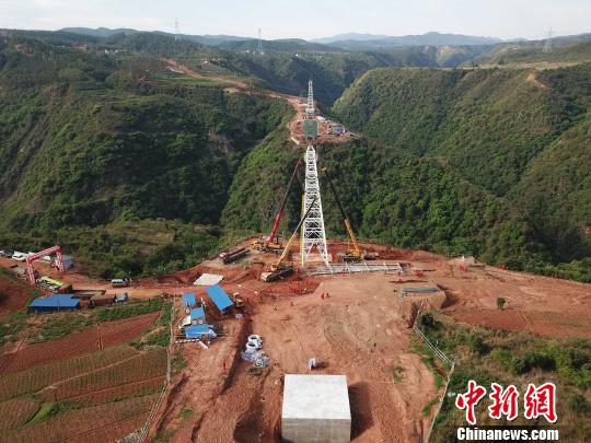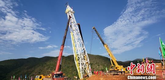 勐崗河懸索跨越北岸塔架吊裝作業現場。華昱翔攝