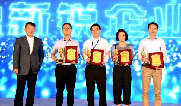 企業(yè)代表上臺領(lǐng)取金融新銳企業(yè)獎現(xiàn)場照