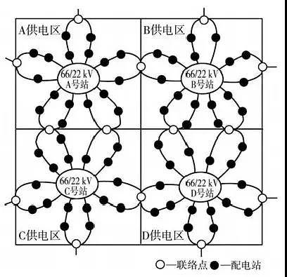 圖1.新加坡22千伏中壓配電網花瓣式接線