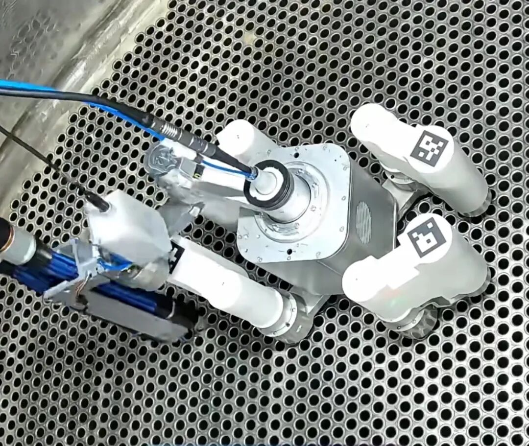 它是全球首臺能查蒸發器傳熱管的四足機器人,靠獨特的四足錨爪結構,像登山者的冰爪一樣抓著傳熱管,能變姿態快速爬行,一邊爬一邊檢測,能同步完成爬行和檢測,效率提升3倍,還能進到人夠不著的狹窄區域,確保傳熱管“無死角檢查”。