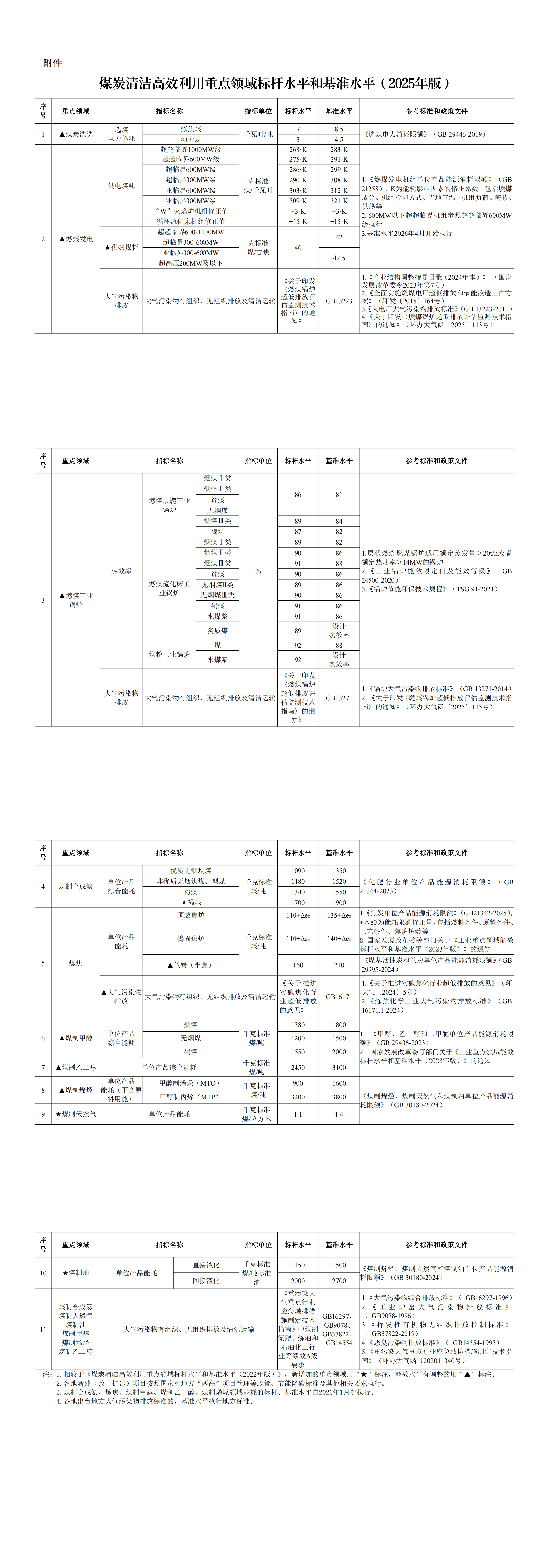 國家發展改革委等部門關于發布《煤炭清潔高效利用重點領域標桿水平和基準水平(2025年版)》的通知