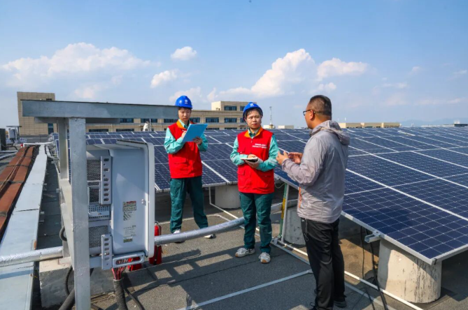 國網(wǎng)濟南供電公司工作人員在全省首家“光伏+儲能”虛擬電廠—濟南高新虛擬電廠開展現(xiàn)場服務