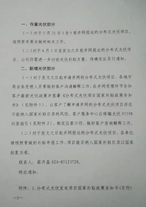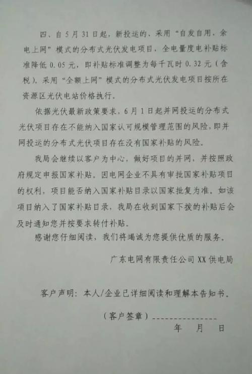 (二)對于6月1日至發文之日前并網投運的分布式光伏項目,公司仍需進一步討論光伏補貼方案,待確定后另行通知。