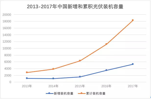 近年來,全球光伏新增裝機快速增長,2017年,新增裝機容量達到102GW,同比增長超過37%,新增裝機容量大于燃煤、天然氣和核電凈增裝機的總和,累計容量達到405GW。2017年,除中國外,主要增長的市場有日本的7GW、美國的10.6GW、歐洲的8.61GW和印度的9.6GW。