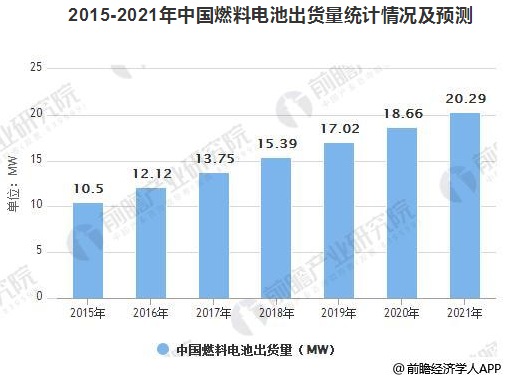 2015-2021年中國燃料電池出貨量統(tǒng)計(jì)情況及預(yù)測
