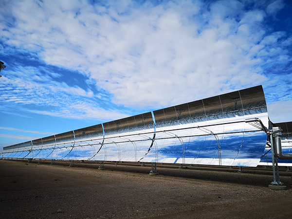 與光伏發(fā)電相比,光熱發(fā)電的電力輸出更穩(wěn)定。德令哈項目全部采用槽式導熱油太陽能熱發(fā)電技術,配備了一套低成本、大容量、無污染的儲能系統(tǒng),當光照不足時,存貯的熱量可以繼續(xù)發(fā)電,實現(xiàn)24小時連續(xù)穩(wěn)定發(fā)電,對地區(qū)電網(wǎng)的穩(wěn)定性起到改善作用。
