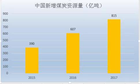 2017年,全國新發現礦產地109處,煤炭有8處;勘查新增資源量超過50億噸煤田有3處。