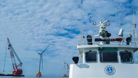 二是主動落位,突出一線監管。順應基層海事模式化改革要求,加強執法力量傾向一線,并聯合施工方對安全保障措施和警戒方案進行評估,制定節假日期間重點水工巡航游弋計劃,結合“互聯網+海事”信息化應用強化風電施工水域的電子巡航和海上巡查,積極探索構建海上風電施工無人機巡檢機制,工程施工以來,舟山海事部門累計開展海上風電施工巡查74次,對施工水域設置的燈浮、AIS航標及3座海上風機高承臺工程開展夜查8次;有效保障海上風電項目建設工作安全平穩推進。
