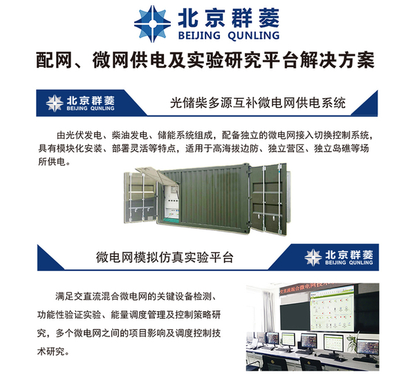 北京群菱能源科技有限公司專業(yè)致力于新能源檢測及系統(tǒng)集成、電動汽車充電站檢測及系統(tǒng)集成、電源測試設(shè)備研發(fā)與制造的高科技生產(chǎn)型企業(yè)。針對微電網(wǎng)實驗研究領(lǐng)域的難題,推出配網(wǎng)、微電網(wǎng)供電及實驗研究平臺解決方案。