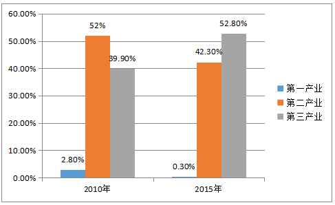 統(tǒng)計(jì)數(shù)據(jù)顯示,深圳第三產(chǎn)業(yè)比重從2008年開始首次超過第二產(chǎn)業(yè)。在創(chuàng)新驅(qū)動(dòng)發(fā)展戰(zhàn)略推動(dòng)下,2013年-2015年期間,深圳按照“十二五”節(jié)能減排目標(biāo),將產(chǎn)業(yè)結(jié)構(gòu)調(diào)整、能源結(jié)構(gòu)清潔戰(zhàn)略整合提升成為低碳發(fā)展規(guī)劃,引導(dǎo)產(chǎn)業(yè)結(jié)構(gòu)調(diào)整和投資方向。從現(xiàn)有的產(chǎn)業(yè)發(fā)展情況來看,以創(chuàng)新驅(qū)動(dòng)低碳發(fā)展效果明顯,2013年二、三產(chǎn)業(yè)產(chǎn)業(yè)結(jié)構(gòu)為43.5:56.5,2015年為產(chǎn)值占比為41.2:58.8,碳排放占比為42.3:52.8,兩大產(chǎn)業(yè)比例已發(fā)生結(jié)構(gòu)性改變。