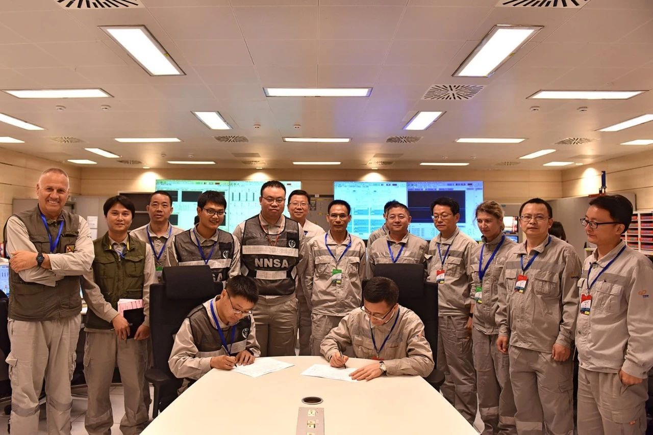 4月10日下午,生態環境部副部長、國家核安全局局長劉華在北京向臺山核電合營有限公司頒發了臺山核電廠1號機組首次裝料批準書。經過華南核與輻射安全監督站現場核實1號機組滿足裝料條件后,簽字放行。臺山核電廠1號機組于當日20時18分開始進行第一組燃料組件裝載操作。
