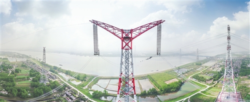 隨著西電東送±1100千伏“新疆準(zhǔn)東—安徽皖南”特高壓直流工程的最后一相導(dǎo)線順利跨越天塹長(zhǎng)江,世界電壓等級(jí)最高的特高壓大跨越——昌古特高壓長(zhǎng)江大跨越工程全線貫通。