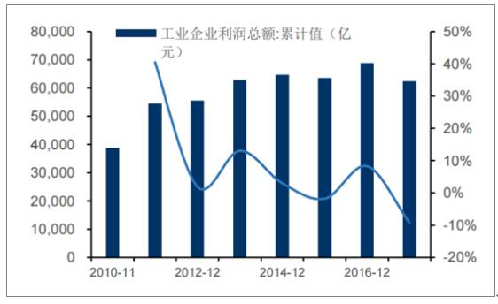 工業(yè)企業(yè)利潤(rùn)總額同比增速自2016年開(kāi)始好轉(zhuǎn),2017年以來(lái)顯著提升
