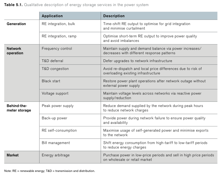 表5.1電力系統儲能服務的定性描述