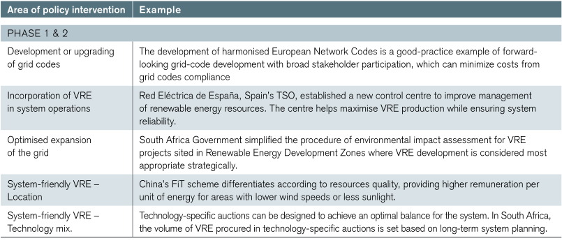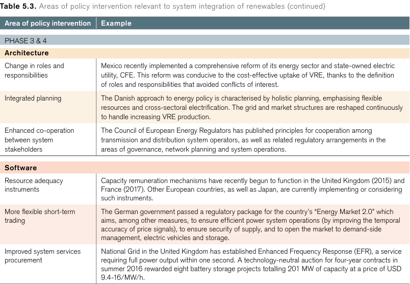 表5.3顯示按電力系統階段和層次分列的政策干預領域,并舉例說明。