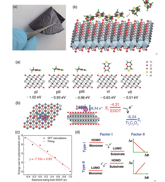 圖1 MXene/EDOT復(fù)合結(jié)構(gòu)及EDOT表面聚合機(jī)理示意圖
