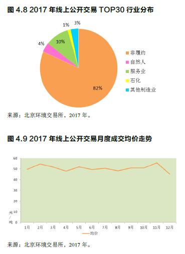 自2013年11月28日正式開市以來,北京碳市場已順利運行四年。在剛剛過去的2017交易年度里,北京碳配額成交753萬噸,成交額2.36億元。其中,線上公開交易成交量247萬噸,成交額1.23億元,成交均價49.95元/噸;線下協(xié)議轉(zhuǎn)讓成交量505萬噸,成交額1.13億元。相較2016年,配額成交量增長3.48%、成交額增長0.03%,線上和線下成交量分別增長0.35和5.09%。在剛剛閉幕的北京市兩會上,陳吉寧市長在政府工作報告中指出,過去五年全市萬元地區(qū)生產(chǎn)總值二氧化碳排放累計下降28.2%。其中,北京碳市場為實現(xiàn)這個減排目標(biāo)發(fā)揮了重要的支撐作用。