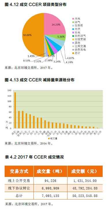2017年,七省市二級市場線上線下共2017年12月19日,國家發(fā)改委召開新聞發(fā)布會,正式宣布啟動中國碳排放權(quán)交易體系成交碳配額現(xiàn)貨接近6,740萬噸,較2016年交易總量增長約5.31%;交易額約11.81億元,較2016年增長約13.01%。CCER交易量由于各試點碳市場公布的內(nèi)容及口徑不一,缺乏線上線下全國全口徑的公開統(tǒng)計數(shù)據(jù)。