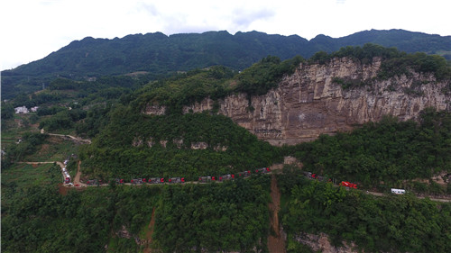 杰瑞壓裂車組行駛在四川頁(yè)巖氣地區(qū)蜿蜒的山路中