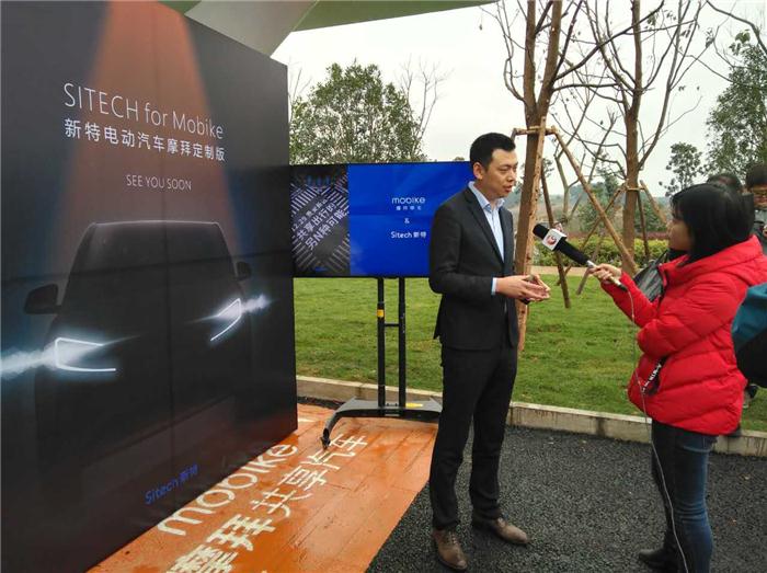 圖為:SITECH新特電動(dòng)汽車工業(yè)有限公司CEO先越先生在上線儀式現(xiàn)場(chǎng)接受采訪