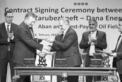 3月14日,俄羅斯國有扎魯別日石油公司(Zarubezhneft Oil)引領(lǐng)的財(cái)團(tuán)與伊朗國家石油公司(NIOC)簽署了7.42億美元、為期10年的油田開發(fā)協(xié)議,將攜手開發(fā)位于伊朗西部伊拉姆省(Ilam)的兩塊油田。