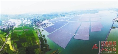圖為已經(jīng)建成的部分漂浮光伏面板。據(jù)悉,全球最大的水面漂浮光伏電站將于6月竣工,該項(xiàng)目位于安徽省淮南市潘集區(qū),由中國三峽集團(tuán)利用采煤沉陷區(qū)閑置水面建設(shè),總投資近10億元,項(xiàng)目總裝機(jī)容量約150兆瓦。全部建成后年發(fā)電量約1.5億度,在發(fā)電效益上,相當(dāng)于支撐國家17.64億元的GDP,年?duì)I業(yè)額約1.2億元,年納稅約2500萬元以上。后期的計(jì)劃是探索一些漁光互補(bǔ)的新模式,利用閑置的水域進(jìn)行養(yǎng)魚,通過養(yǎng)魚來改善水質(zhì)。
