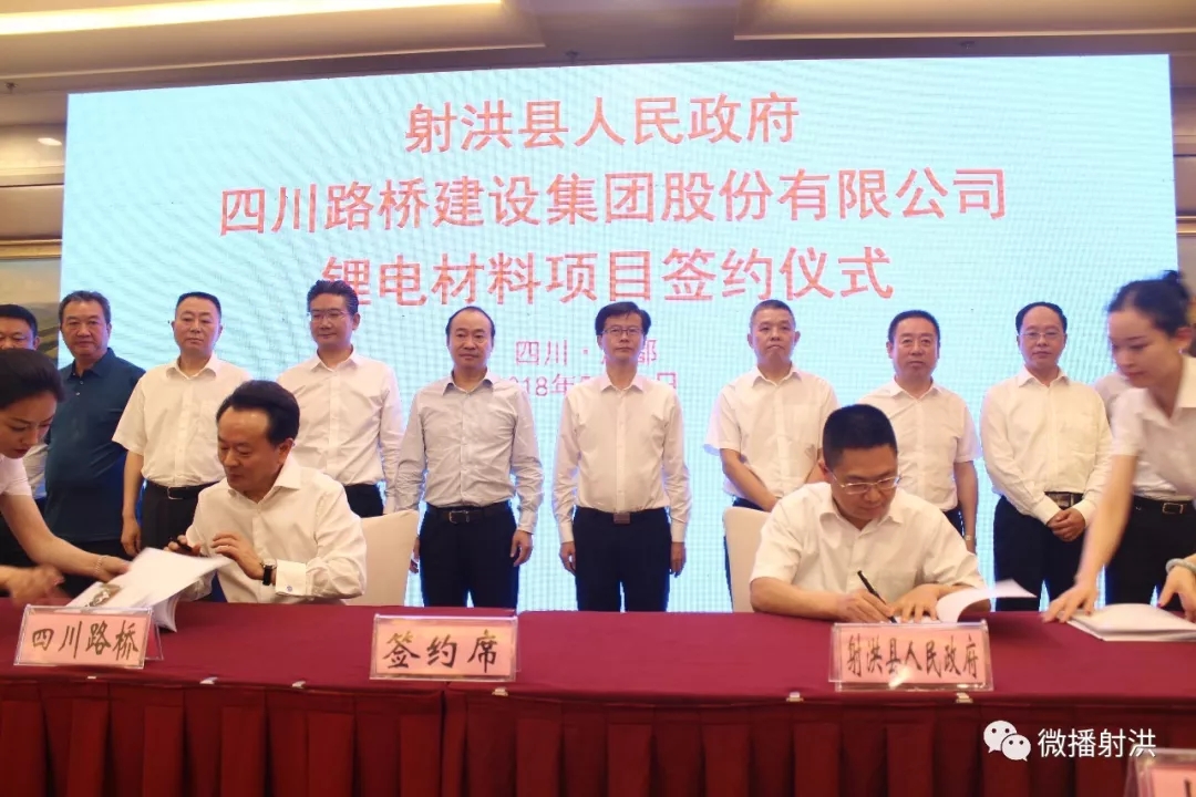 5月13日,射洪縣人民政府與四川路橋建設集團股份有限公司鋰電材料項目簽約儀式在成都舉行,年產5萬噸鋰電池正極材料和年產10萬噸正極材料前驅體項目正式落戶射洪。