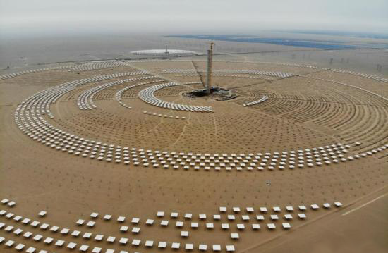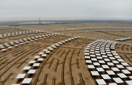 作為中國(guó)首批光熱發(fā)電示范項(xiàng)目的建設(shè)基地之一,該電站有全球單機(jī)最大的聚光集熱鏡場(chǎng),共一萬(wàn)余臺(tái)定日鏡。