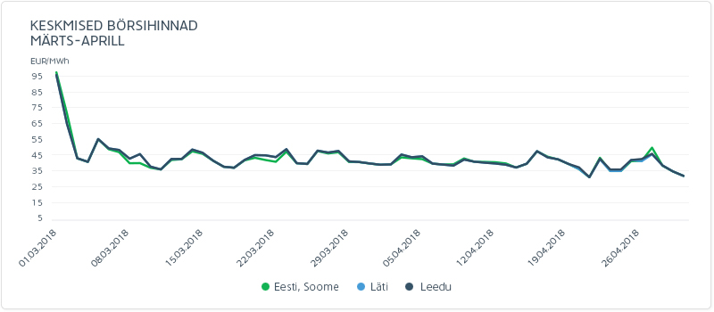收盤價(jià)的基礎(chǔ)上,在四月交易的期貨“提前一個(gè)月”可以預(yù)期,5月用電在波羅的海國(guó)家和芬蘭的平均價(jià)格可能會(huì)恢復(fù)過(guò)來(lái)€36.60 /兆瓦時(shí),而目前似乎是一個(gè)合理和現(xiàn)實(shí)的。